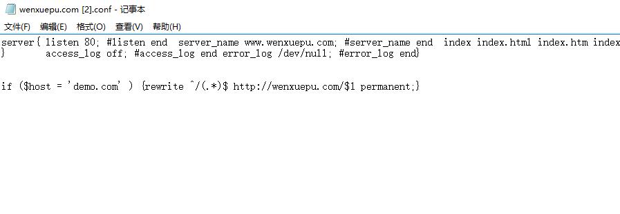 在 你的域名 www.demo.com.conf 加入 if ($host = 'demo.com' ) { 求加分采纳!