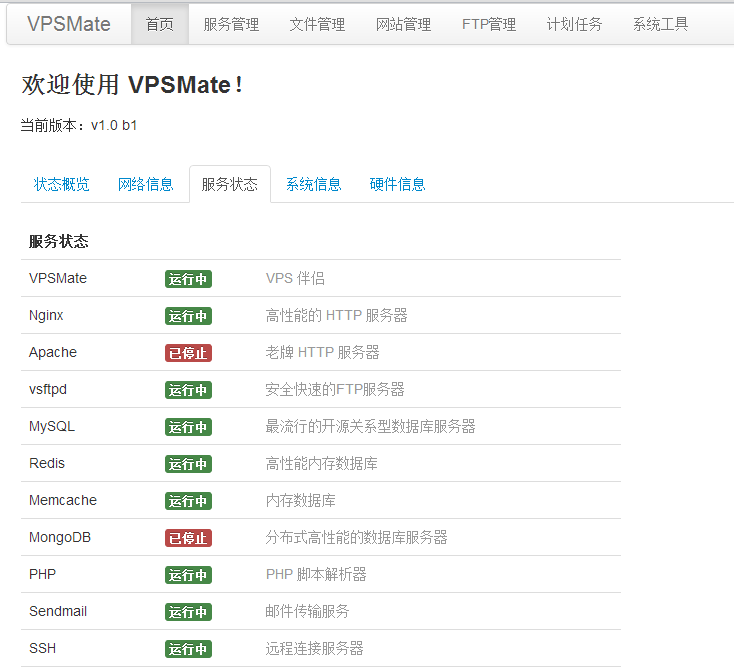 但不得不说在面板设计上,VPSmate的用户体验更强,界面更小白。一目了然。 当然,AMH也有自己很大的优势。 我只是觉得别人有优势我们要去吸收采纳。请作者重视。 ![]() ![]() ![]() ![]() ![]()