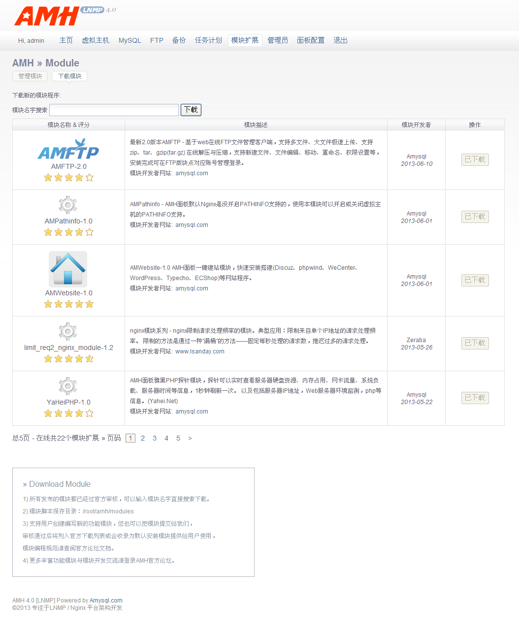[LNMP/Nginx] AMH4.0 面板模块功能预览