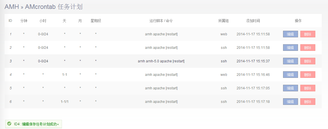 amh apache restart 不要使用[] [] 中的参数选择其中一个使用。