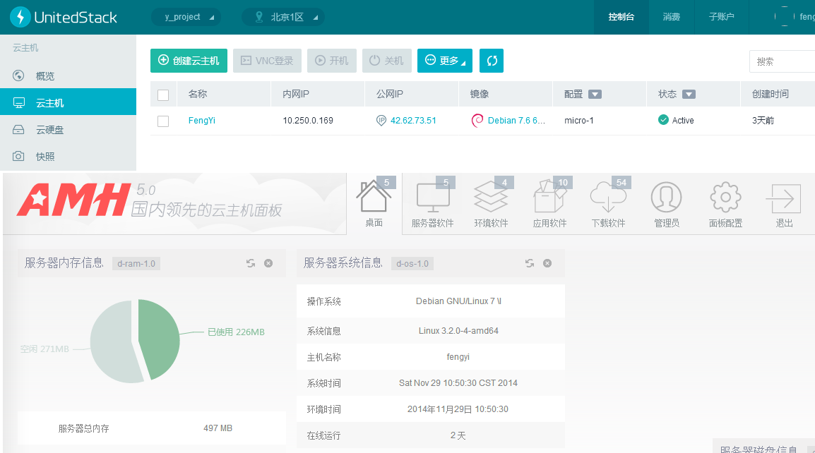以前用的是息壤的空间,备案非常让人不爽。阿里云的备案,丝般爽滑,应该能很快备出来。 今天下午刚好略清闲,发一下AMH5.0的最新试用报告吧。目前环境配置状态如下: ![]() 服务器软件5个: nginx-generic-1.6.0 / Apache-2.4.9 / php-generic-5.3.28 mysql-generic-5.5.40 / pure-ftpd-1.0.36 WEB运行环境应用2个: lnmp-1.5 / lamp-1.5 服务器软件应用2个: madmin-1.0 / amftp-2.0 WEB应用程序2个: amrewrite-1.0 / kodexplorer-2.7.3 环境扩展程序2个: amchroot-1.1 / memcached-1.4.20 桌面程序:就是你们看到的下边的统计图用的这几个了 d-ram-1.0 / d-os-1.0 / d-net-1.0 / d-disk-1.0 / d-cpu-1.0 已经放置了两个站点,没有开启站点日志,目前整体资源占用统计如下: ![]() ![]() ![]() 5.jpg