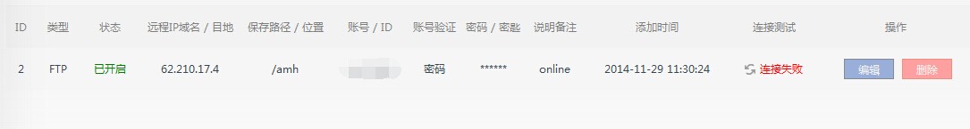 amh5.0 online.net备份FTP 设置 连接失败 ![]() FileZilla连接顺利 解决: /root/amh/modules/amdata-1.0/admin-script BRftp 16行 47行 改ftp -n -v -p ![]() OK