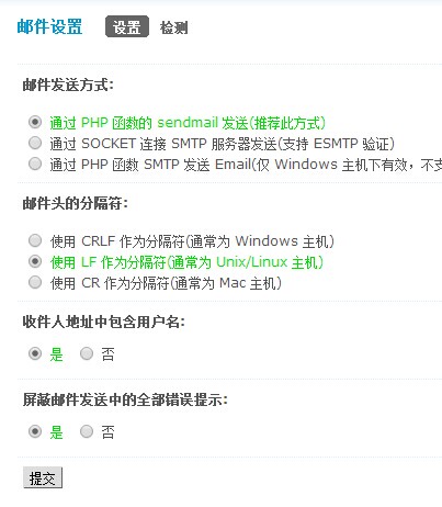 我的是lamp环境,安全模式,自带的sendmail用不了,所以用smtp