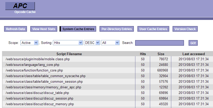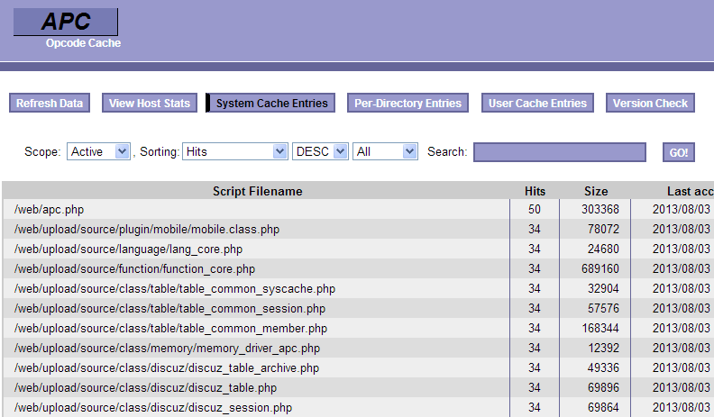 不清楚是什么原因, 然后接着测试APC,xcache同样的测试用APC都正常。 命中率挺高。 ![]() ![]() ![]() ![]() 目前建议有这方面需要的用户,还是用PHP官方的APC吧 (http://php.net/apc), 结合php-fpm会稳些。