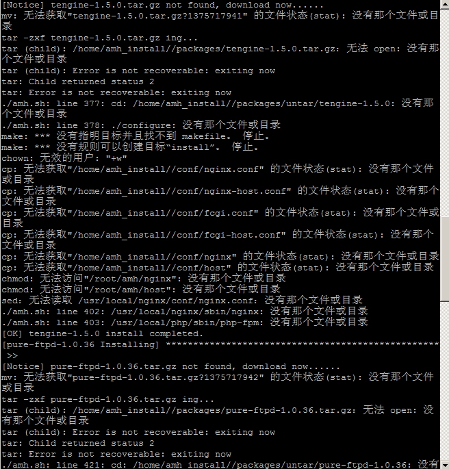 其他已经没问题了 但是 脚本下载有问题 404 虚拟机 正式vps都是404 wget http://www.mf8.biz/download/amh.sh; chmod 775 amh.sh; ./amh.sh 2>&1 | tee amh.log; 不知道是不是上面这个代码问题 不懂 不评论 分2步就可以 wget http://www.mf8.biz/download/amh.sh chmod 775 amh.sh; ./amh.sh 2>&1 | tee amh.log;