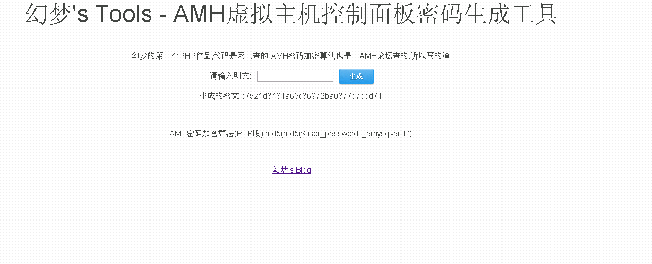 ![]() 工具地址:http://tools.ihuanmeng.com/ 用途:修改AMH登录密码