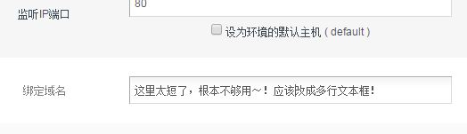 [attach]2958[/attach] [attach]2959[/attach] 第二个,也是最要命的,虚拟主机里绑定的域名框太短了,根本不够用。 而且显示上限制字数也太少,显示不全。一旦超出字数的时候,重新编辑,就会丢掉原来的域名。 对于绑定很多域名的一个主机来说,简直无法想象。。。。 [attach]2961[/attach] [attach]2962[/attach] 附件 捕获3.JPG 捕获4.JPG 捕获2.JPG 捕获1.JPG