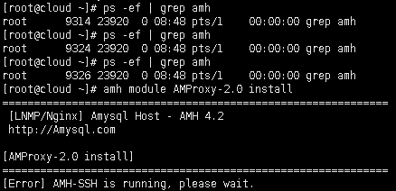 提示[Error] AMH-SSH is running, please wait. 测试发现,之前装的amh4.2可以正常的安装模块。 新装amh 4.2 就提示错误