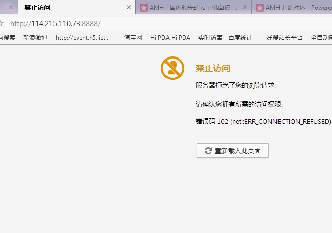 【amh 5.1问题 】打开AMH控制面板和其他服务器内网站禁止访问