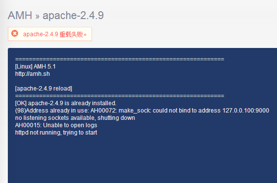 如题,装的apache-2.4.9不起作用呢,监听不了端口,不管是80,81端口,还是其他的端口,不起作用所以,所以创建的虚拟主机打不开!!!!最后去重启apache-2.4.9,重启不了,然后重载它,还是不行,如图所示: