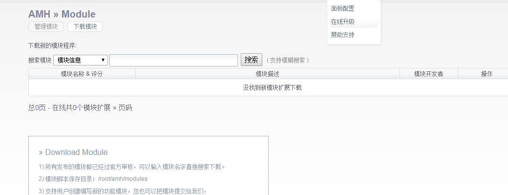 amh后台模块下载怎么没有模块了