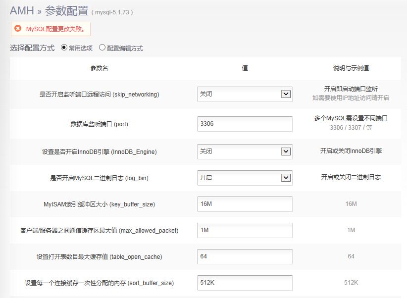 mysql-5.1.73 升级后去掉了“效验配置” 但是修改“是否开启监听端口远程访问 (skip_networking)”还是出现“MySQL配置更改失败。”啊 支持 支持 支持