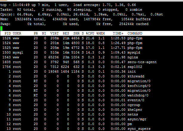 ![]() 百度了下命令,top显示以下:不过我看不懂呢 ![]()