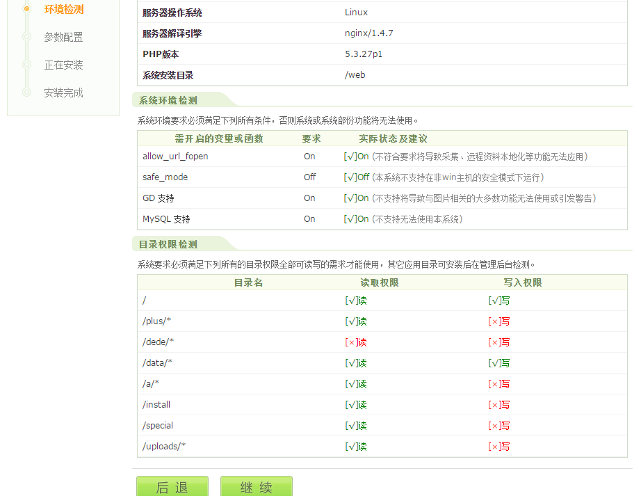 求助 AMH 4.2 安装dedecms 时提示写入权限不足问题