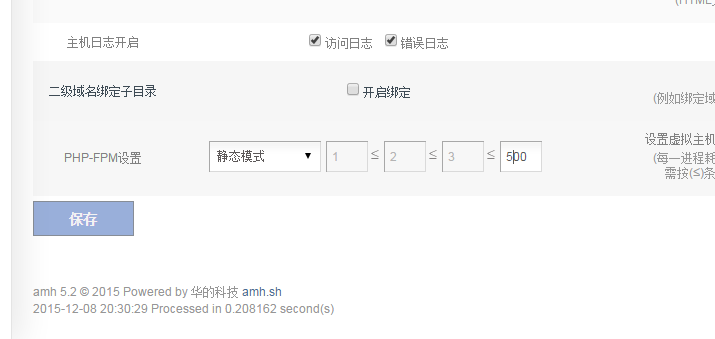 nginx-generic-1.6.0 + mysql-generic-5.5.40 + php-generic-5.3.28 pv 11万左右,我也刚刚换的服务器和转用的amh,amh是相当的简单和方便,之前是两台服务一台数据库用的win2008 还有台linux用的 wdcp, 现在换了台比较好的服务器装的amh面板,比较稳定,资源用得也相当少。cpu很少有超过5%的