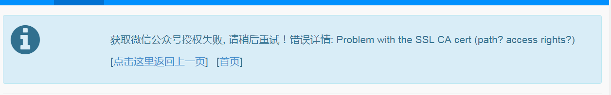 错误详情: Problem with the SSL CA cert (path? access rights?) ![]() 提示错误