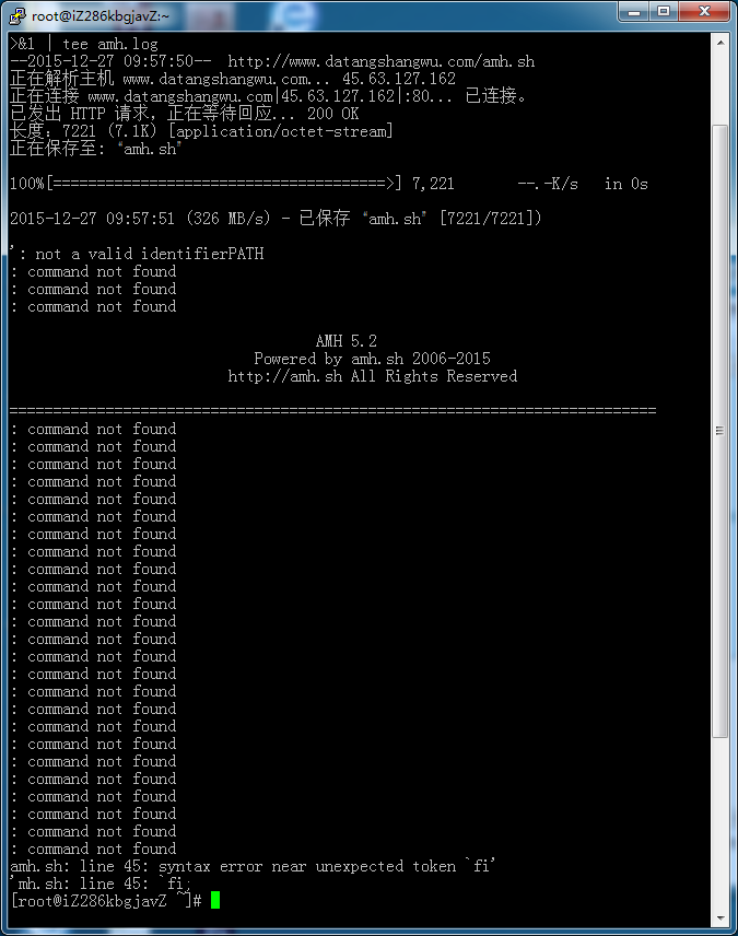 AMH5.2 编译安装 时出现 command not found,最下面提示 syntax error near unexpected token `fi' 这个问题是为什么呢? 我想把默认的PHP与nginx升级,做出了如下更改 ![]() 阿里云主机,6.5 64位 更换系统盘后的空系统 ![]() 拐回头,用官方的 也是这样